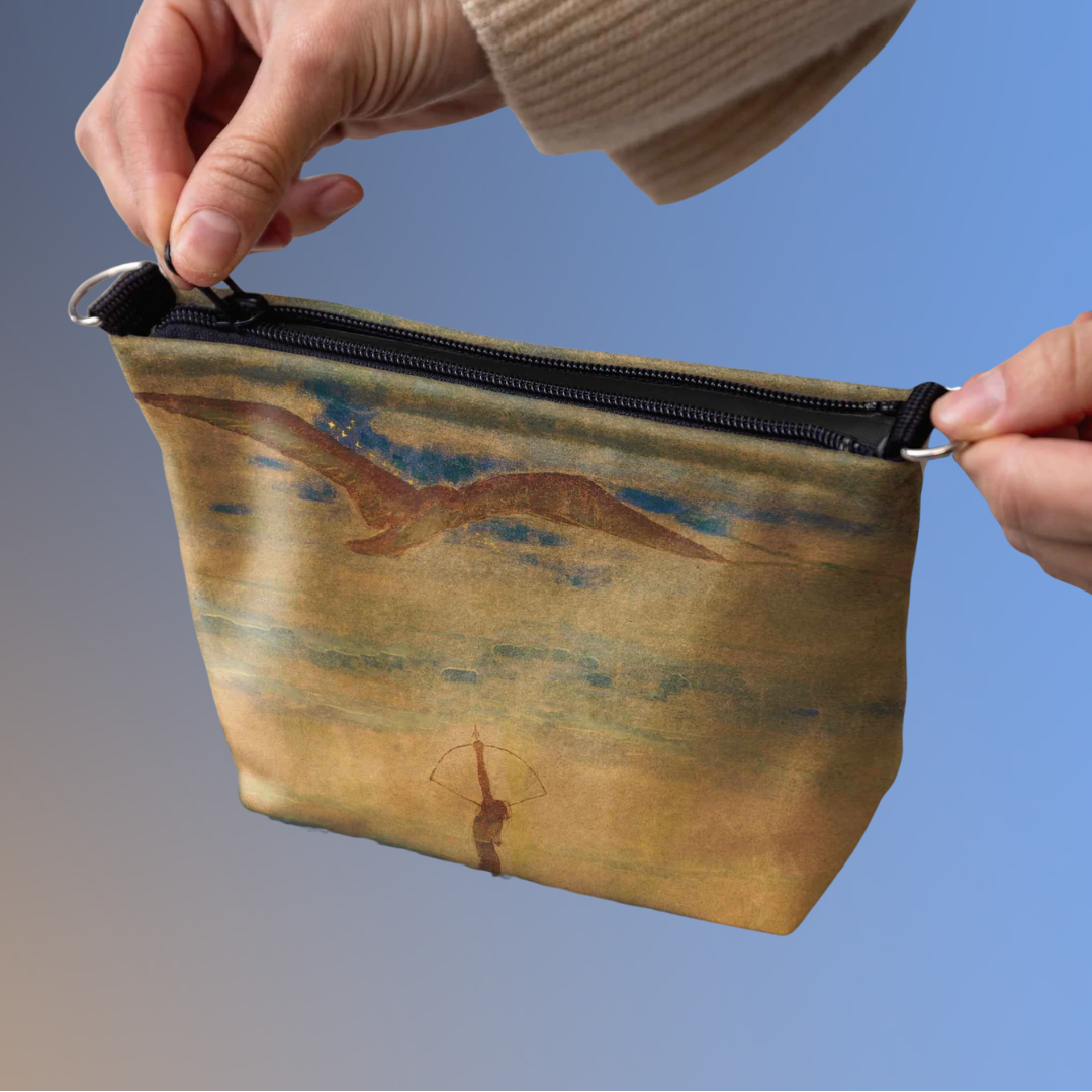 Ieškote stilingo, patogaus ir išskirtinio aksesuaro kasdienai? Ši kosmetinė su M. K. Čiurlionio paveikslo „Saulė eina Šaulio ženklu” motyvu – tai daugiau nei tik praktiška detalė. Tai meno kūrinys, kurį galite nešiotis su savimi.